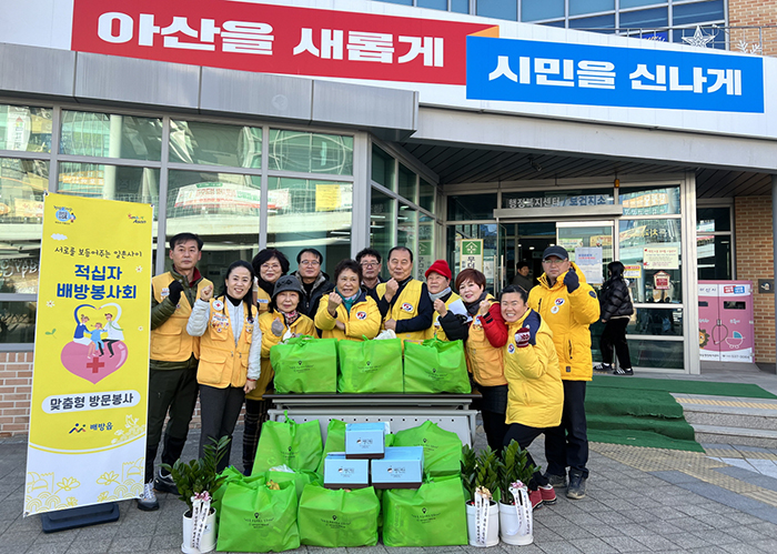 맞춤형 방문 봉사는 배방적십자 봉사회 회원들이 매월 1회 장애인·독거노인·다문화 가정을 방문해 안부를 확인하고 기초푸드뱅크에서 제공한 식료품을 전달하는 사업이다.