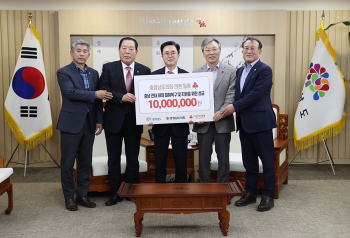 이에 충남도의회 48명의 의원들은 산불 피해지역의 빠른 복구를 염원하며 성금을 모금했다.