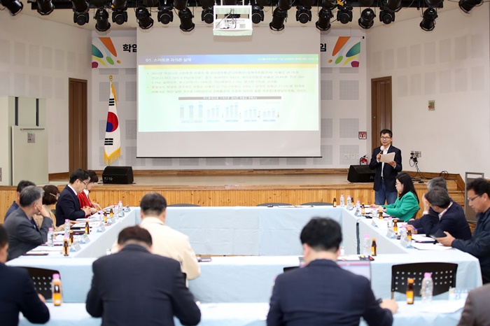 이날 ‘교사를 위한 SBIRT기반 스마트폰 과의존 예방 가이드 개발’ 연구용역 착수보고회에서는 광주교육대 손현동 교수의 연구 설명과 함께 스마트폰 과의존과 게임중독으로 인한 학업중단 위기 학생 교육을 위한 다양한 방안이 제시됐다.