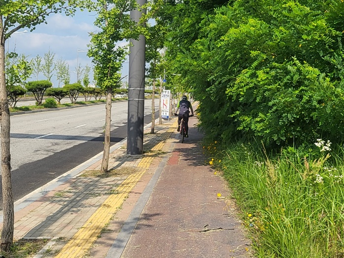 최근 곡교천 인근 자전거도로를 다녀왔다는 한 시민은 본지에 “도로 옆에서 자란 꽃들이 가드레일을 넘어 자전거도로를 덮어버리고 있는 형국이어서 인도를 지나는 보행자들과 동선이 겹치는 경우가 잦았다”면서 “이 풀들로 인해 인도 쪽으로 라이딩을 해야하고, 넘어질 뻔 한 경우도 종종 발생한다”고 불편을 호소했다.