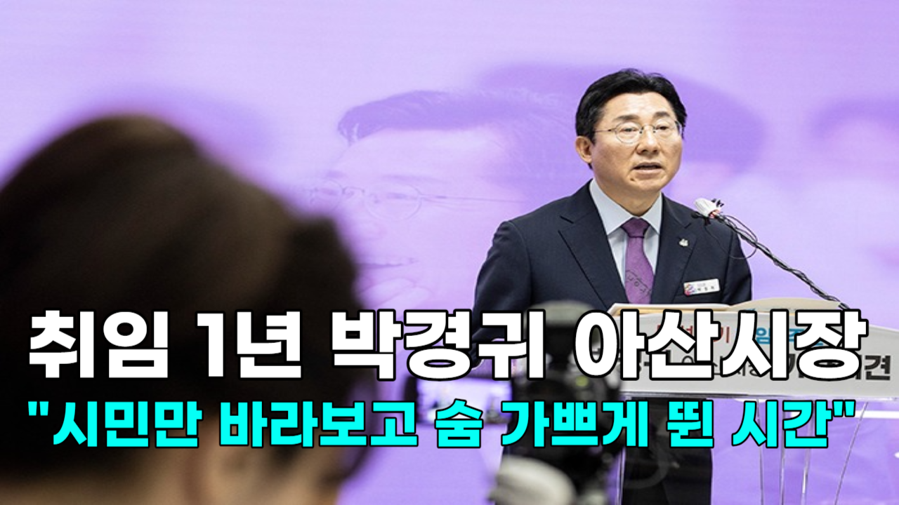 - 박경귀 아산시장이 지난달 27일 오전 아산시청 상황실에서 취임1주년 기자회견을 가졌습니다. 박 시장은 지난 1년을 오직 ‘아산 시민’과 ‘아산의 미래 발전’만을 바라보고 숨 가쁘게 뛴 한해”라고 회고했습니다. 그러면서 국립경찰병원 분원 유치, 곡교천 아트·리버파크 통합하천 조성사업 국비 확보, 성웅 이순신 축제 전면 개혁 등을 성과로 내세웠습니다.