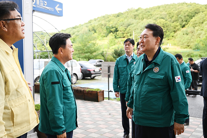 이번 집중호우로 공공시설 피해는 하천 101건, 도로 234건 등 총 453건, 사유시설 피해는 116건으로 각각 집계됐다. 또 농작물 침수는 9918.3㏊, 축산농가 피해는 118농가, 산사태는 12.36㏊ 등으로 나타났다. 이에 김태흠 충남지사는 18일 공주를 방문한 윤석열 대통령에게 특별재난지역 선포와 시설작물 피해 특별 지원을 건의하기도 했다.