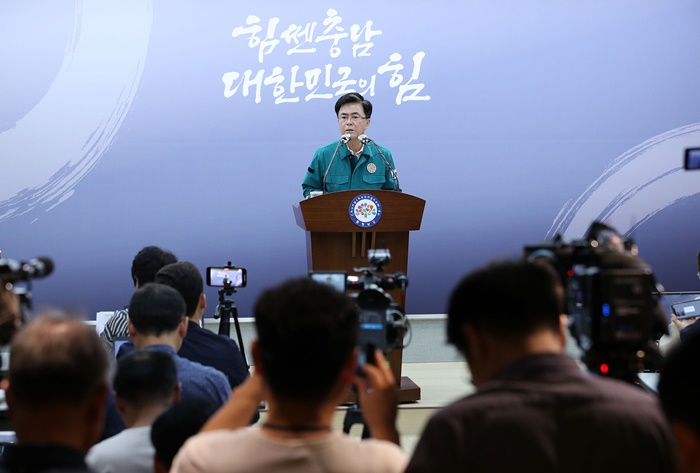 김태흠 지사는 어제(24일) 도청 프레스센터에서 기자회견을 열고, 집중호우 피해 도민 생활 안정 특별 지원 대책과 국가첨단전략산업 특화단지 지정 후속 조치 계획을 발표했다.