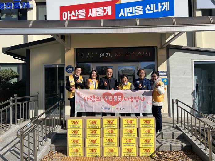▲ 아산라이온스클럽이 영인면 행복키움추진단에 김치 20상자를 기부했다. ⓒ 사진=아산시 제공