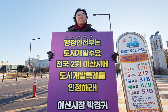 하지만 박경귀 아산시장은 1인 시위를 벌이면서 "제도 출범 이후 특례를 부여받은 지자체가 전무한 가운데, 지방자치법 제198조 ‘실질적 행정수요’ 조건에 그 어떤 시군보다 부합하는 아산시조차 거절된다면 제도의 존재 자체가 흔들릴 수 있다"며 강하게 반발했다.