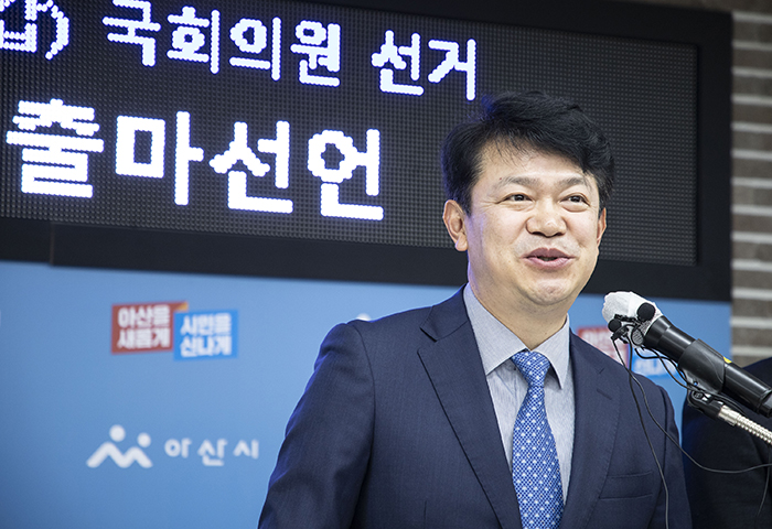 복기왕 위원장이 공식 출마선언을 하면서 아산갑 지역구 대진표에 관심이 쏠리는 양상이다. 국민의힘 쪽에선 현 이명수 의원이 유력하지만, 김영석 전 해수부 장관이 꾸준히 하마평에 오르는 중이다.