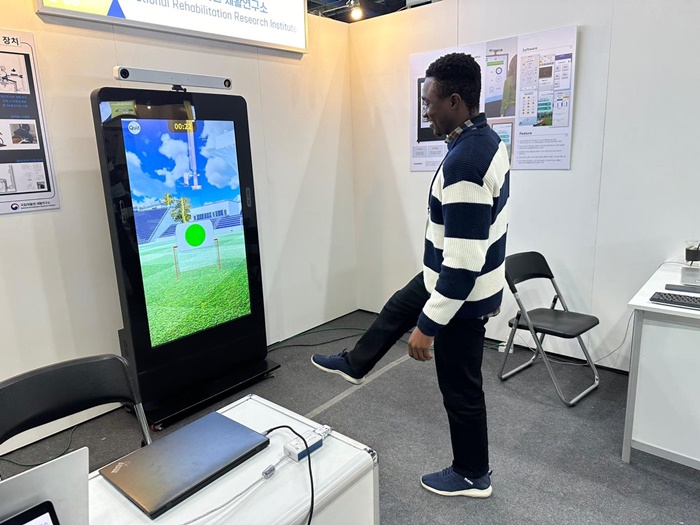 이번에 전시된 기기는 증강 현실을 통해 신체와 인지 활동을 훈련할 수 있는 것으로, 체육관, 병원 등의 시설이 없는 곳에서도 다양한 운동과 치매 예방 등의 인지 활동을 경험할 수 있다.