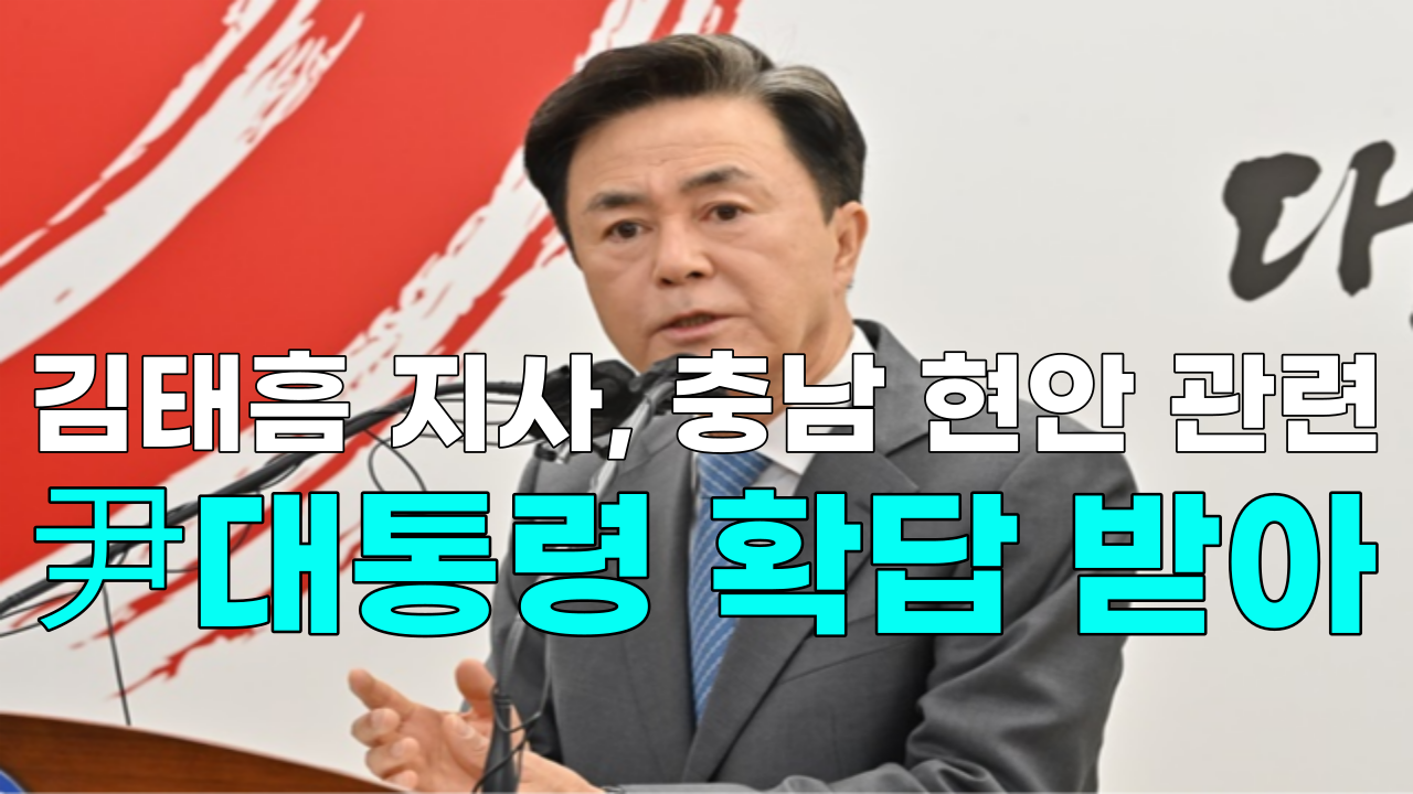 - 윤석열 대통령이 지난달 26일 서산 해미 공군제20전투비행단에서 민생토론회를 열었습니다. 이날 토론회엔 김태흠 충남지사가 참석했는데요, 김 지사는 윤 대통령이 다녀간 다음 날인 27일 기자회견을 자청해 "충남의 현안 문제들을 총망라해 논의했고, 의미 있는 성과를 거둔 자리"라고 평가했습니다. 자세한 내용 심소원 기자가 전합니다.