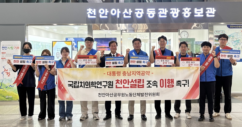 [아산신문] 천안아산공무원노동단체발전위원회(이하 ‘천아공위’)는 어제(23일) 천안아산역에서 국립치의학연구원 천안설립 지지 캠페인을 펼쳤다고 밝혔다.