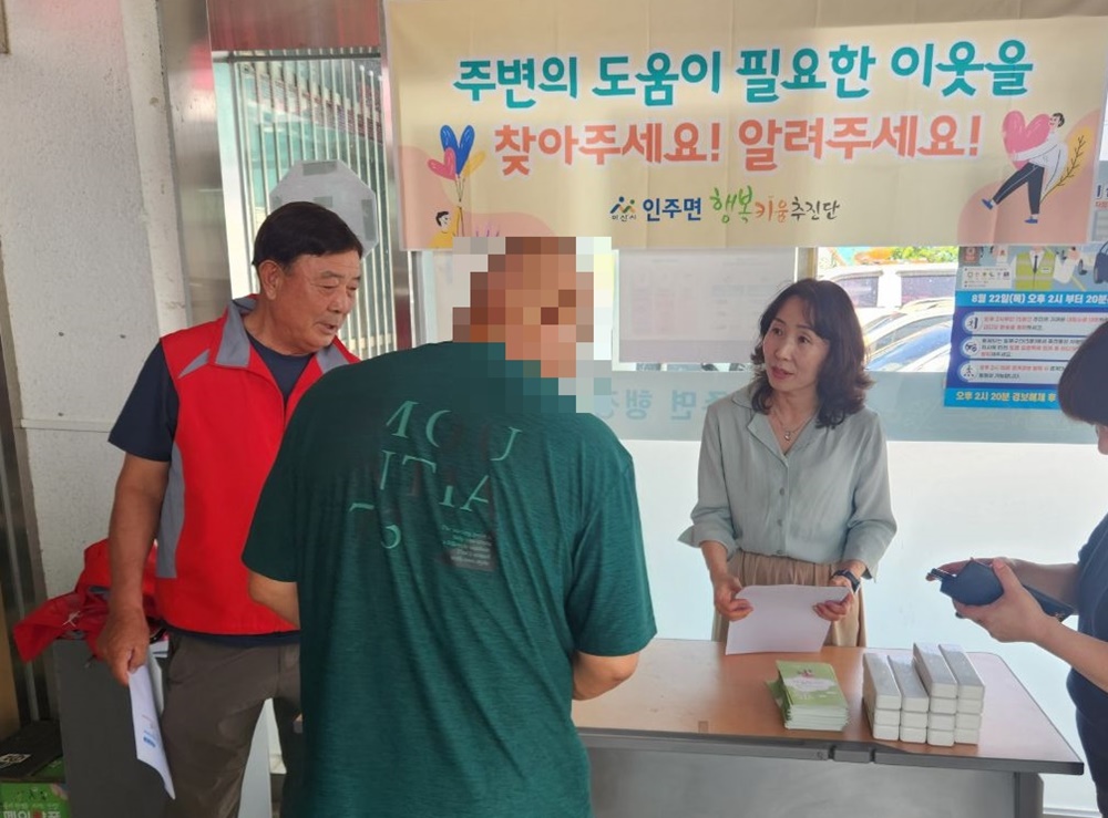 이날 캠페인에서 인주면 행복키움추진단원 및 인주면 직원 등 10여 명은 경제적 어려움과 건강 문제 등으로 위기 상황에 처한 이웃을 찾기 위해 면 행정복지센터, 농협, 약국, 편의점 등 주민 접근성이 높은 곳을 방문해 복지사각지대 발굴 안내문과 홍보물품을 배부했다.