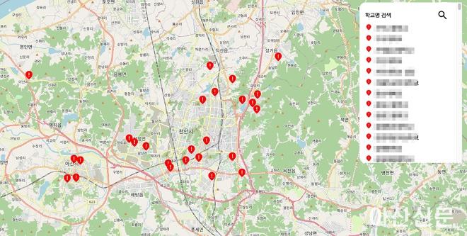 딥페이크 피해를 입었다고 신고된 초·중·고등학교와 대학의 위치·이름을 알려주는 '딥페이크 피해학교 지도'를 분석한 결과 천안·아산 지역에서 중학교 8개교, 고등학교 8개교, 대학교 5개교가 각각 이름을 올렸다.