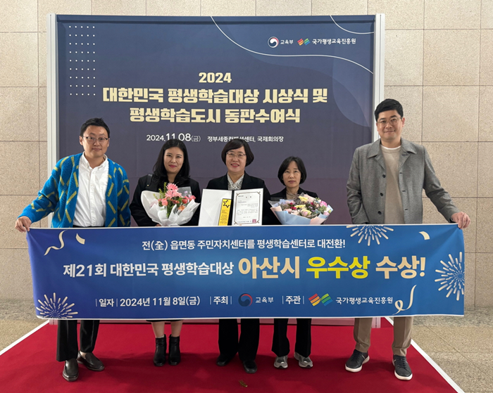 [아산신문] 아산시가 교육부에서 주최하는 ‘2024 대한민국 평생학습대상’에서 평생학습사업 기관‧단체부문 우수상(국가평생교육진흥원장상)을 수상했다.