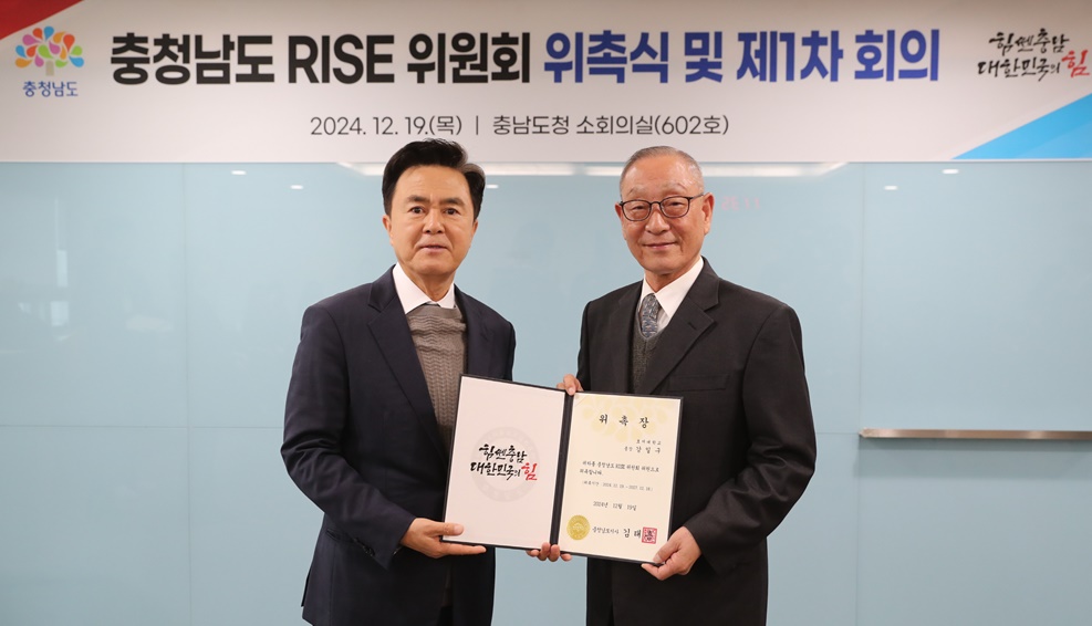 이날 회의에서는 위원 위촉식, 공동위원장 선임, 충청남도 RISE 기본계획(안) 심·의결이 진행됐으며, 충청남도 RISE 위원회 공동위원장으로는 강일구 호서대학교 총장이 선임됐다.