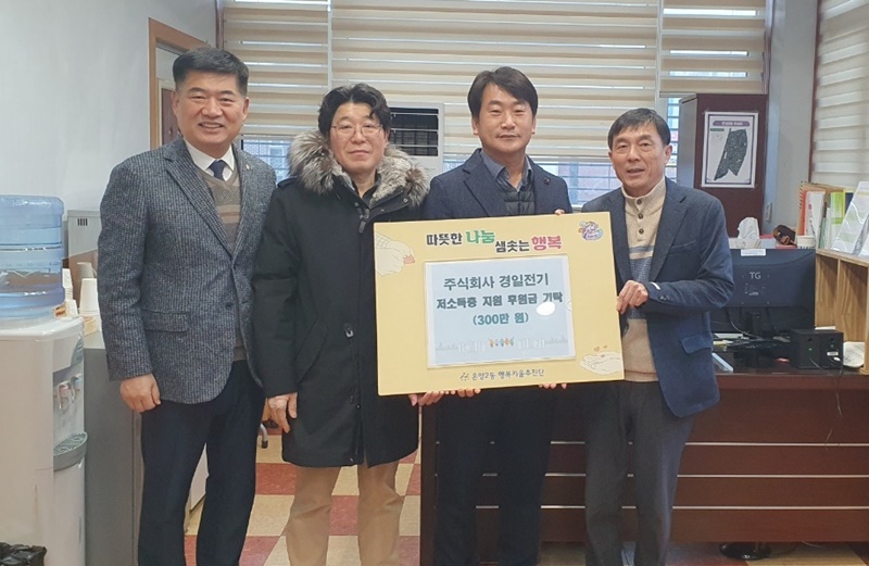 [아산신문] 주식회사 경일전기(대표 최범진, 아산시 영민면 소재)는 어제(30일) 온양2동 행복키움추진단을 찾아 지역의 어려운 이웃을 위해 후원금 300만 원을 전달했다.