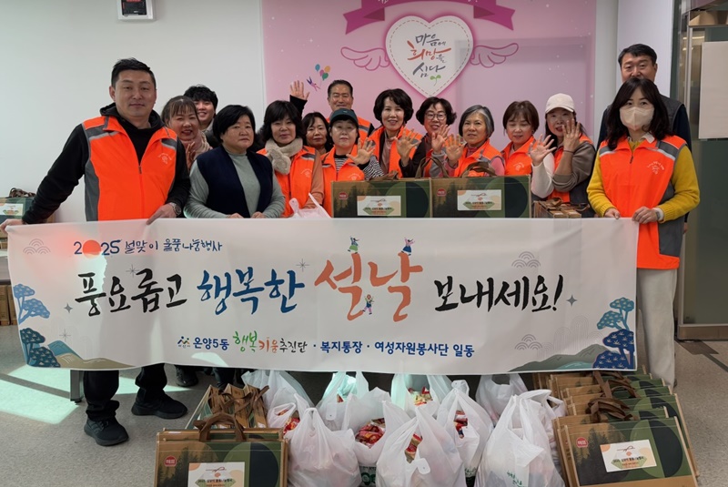 안금선 동장은 “추운날씨에도 설명절을 맞아 어려운 이웃들을 위해 나눔을 실천해 주신 온양5동 행복키움추진단에 감사드리며, 모두가 따뜻한 명절을 보내길 바란다”고 말했다.