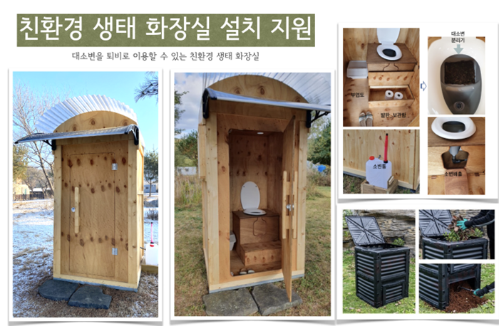 시에 따르면 ‘친환경 화장실’은 EM, 톱밥, 부엽토 등 미생물을 활용해 악취발생이 억제되고 사용과 관리가 편한 간이 화장실을 말한다.