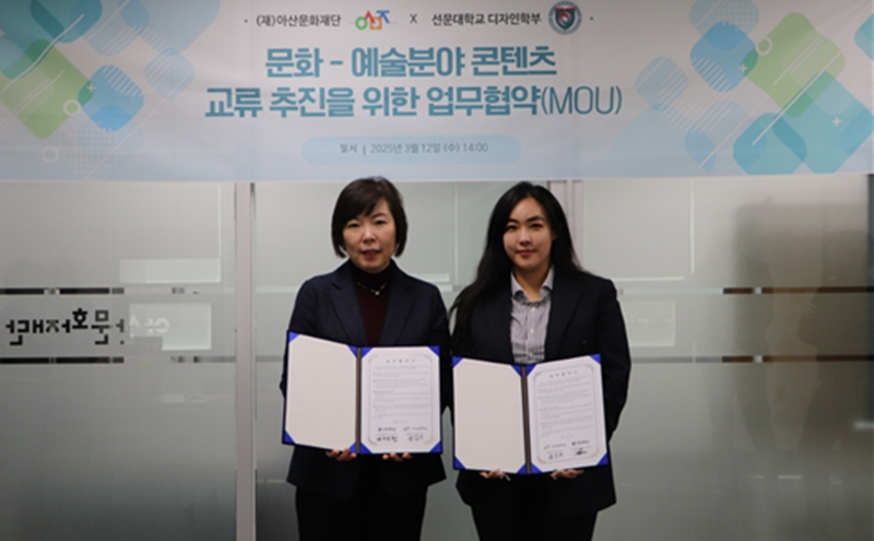 [아산신문] 선문대학교(총장 문성제) 디자인학부가 지난 13일 (재)아산문화재단(대표이사 유성녀)과 문화·예술 분야 협력을 위한 업무협약을 체결했다고 밝혔다.