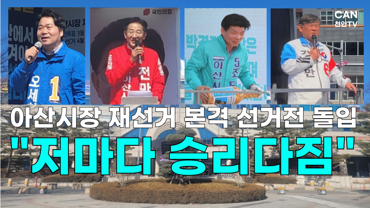 - 4월 2일 열리게 될 아산시장 재선거의 막이 올랐습니다. 더불어민주당의 오세현, 국민의힘 전만권, 새미래민주당 조덕호, 자유통일당 김광만 후보는 저마다 시민들의 표심을 얻기 위한 보이지 않는 경쟁을 시작했습니다.