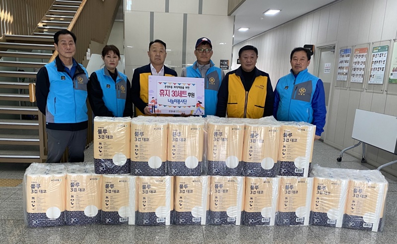 [아산신문] 나눔터봉사단(회장 이은성)이 지난 28일 온양6동 행복키움추진단(동장 정인묵, 단장 이범영)에 관내 취약계층을 위한 휴지 30세트를 기탁했다고 밝혔다.