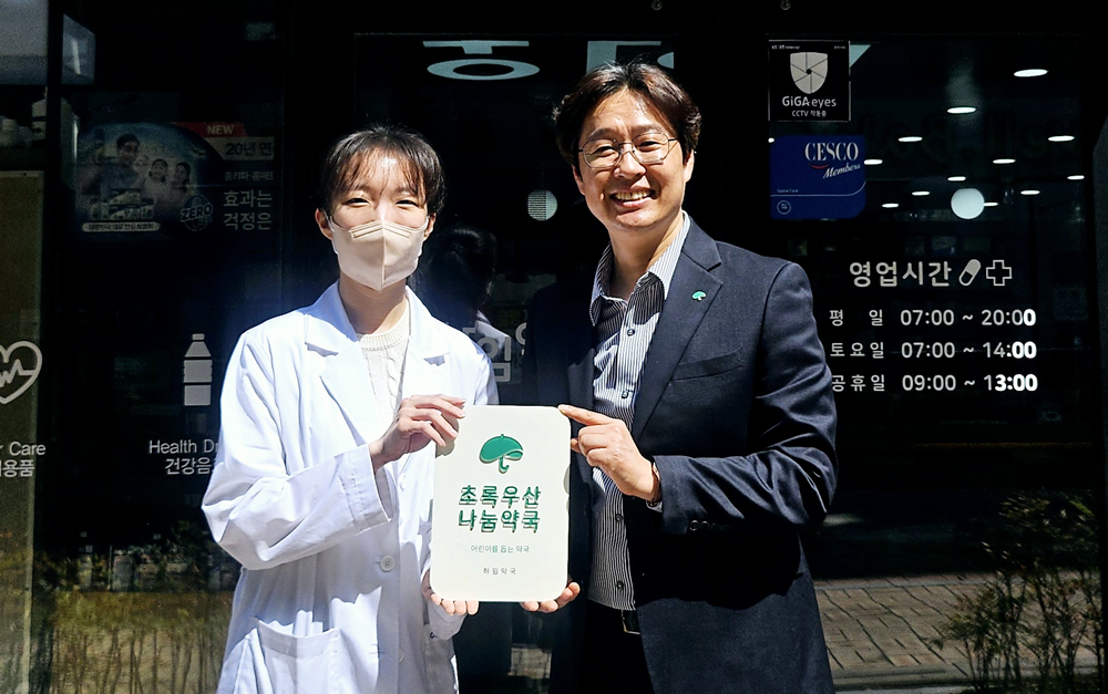 아산 배방에 위치한 하임약국은 초록우산을 통해 국내 취약계층 아동들을 위한 정기후원에 참여하며 나눔약국 현판을 전달 받았다.