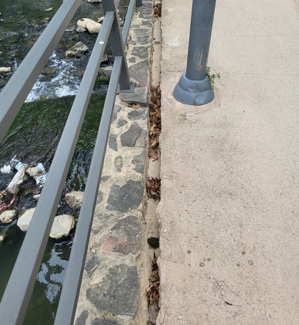 산책로의 일부 구간 울타리와 연결된 축대가 금방이라도 무너질 것 같은 모습이었고, 이것은 자칫 붕괴와 함께 인사 사고로 이어질 수 있다는 지적이다.