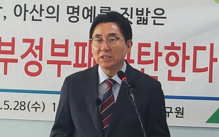 박 전 시장은 28일 오후 아산시 온천동 충남미래전략연구원에서 기자회견을 열고 “오세현 아산시장의 부정부패를 규탄한다”고 목소리를 높였다.