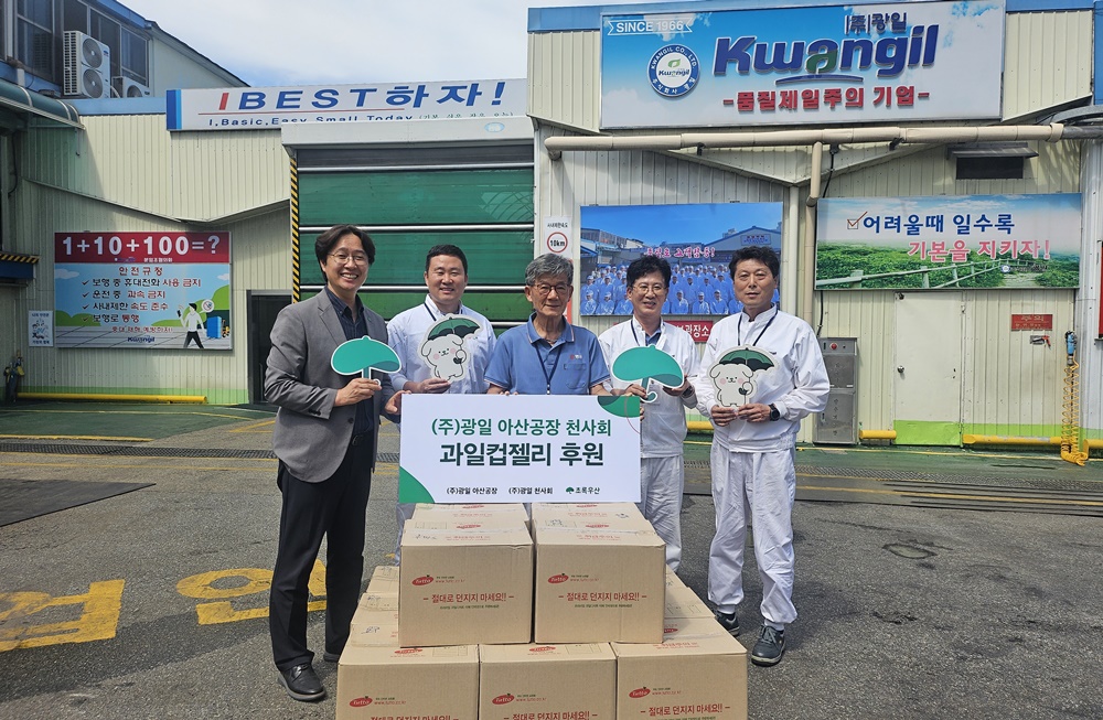 초록우산 충남지역본부는 5일, 광일 아산공장에서 과일컵젤리 624개 전달식을 진행했다고 밝혔다. 이번 후원은 무더운 여름철을 보내는 지역 취약계층 아동들에게 건강하고 시원한 간식을 제공하고자 마련됐다.