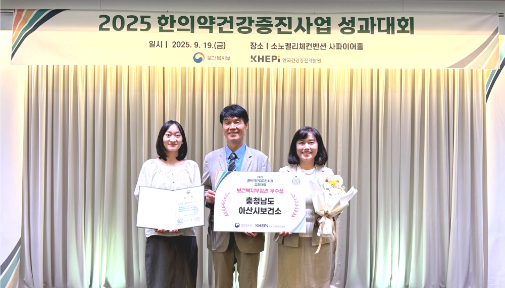[아산신문] 아산시보건소가 지난 19일 서울 강남구 소노펠리체 컨벤션에서 열린 ‘2025년 한의약건강증진사업 성과대회’에서 보건복지부 장관상을 받았다.
