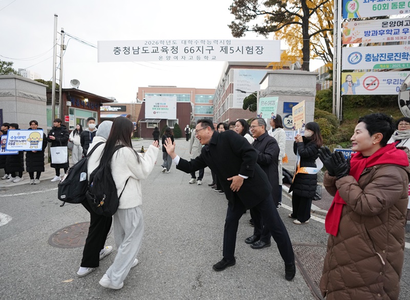[아산신문] 아산시의회(의장 홍성표)는 13일 2026학년도 대학수학능력시험일을 맞아 온양여자고등학교를 찾아 수험생들을 격려하고 응원의 메시지를 전했다.