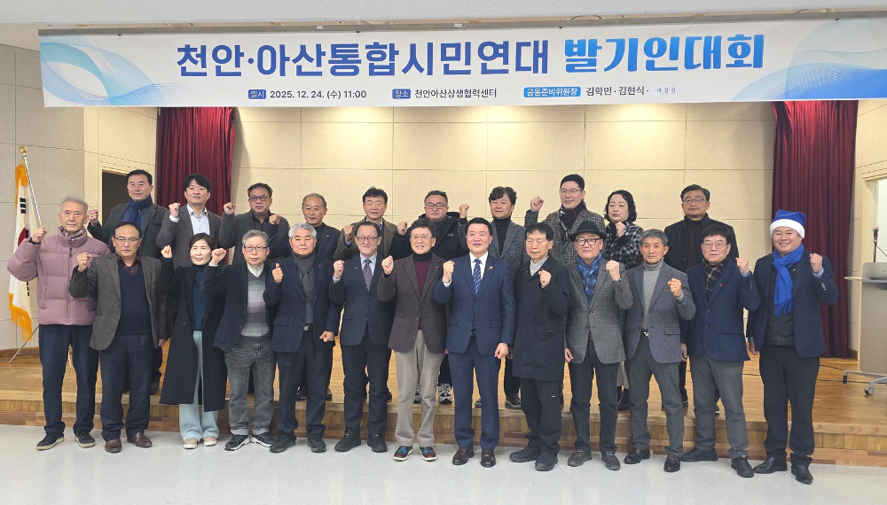 천안·아산통합시민연대는 24일 천안아산상생협력센터에서 발기인대회를 열고, 향후 천안·아산 행정통합을 목표로 한 범시민 운동에 나서겠다고 밝혔다.
