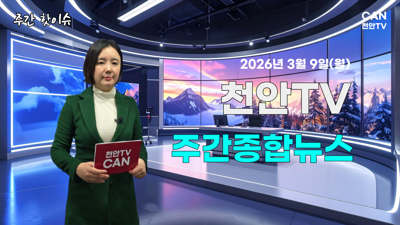 [주간핫이슈] 천안TV 주간종합뉴스 3월 9일(월) 기사입력 2026.03.09 09:47 댓글 0 [아산신문-천안TV] 천안TV 주간종합뉴스 3월 9일(월) ■ 방송일 : 2026년 3월 9일(월) ■ 진행 : 신소영 아나운서 ■ 카메라 : 홍순용 ■ 영상편집 : 박인규 [신소영 아나운서 기자 @] 이 기자의 다른 기사 보기 <저작권자ⓒ아산신문 & assinmun.kr 무단전재-재배포금지. > BEST 뉴스 “오세현 3대 의혹 해명하 ·[뉴스픽] 오세현 재도전…안장헌 토론 맞불 ·국민의힘 충남, 경선 판 짰다 ·안장헌 “중동발 위기 대응…아산 산업 공급망 지키겠다” ·“청년위원장 선거 개입 의혹”…아산시의회, 오세현 시장에 해명 촉구 ·“민주당 충남지사 경선 D-1”…권리당원·도민 ARS 투표 진행 위로 목록 이름 비밀번호 자동등록방지 61094 등록