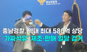 - [영상] 충남경찰청, 역대 최대 580억 상당 ‘가짜석유’ 제조·판매 일당 검거