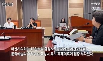 - [현장영상] 아산시의회 문화예술과 행감_유성녀 특보 특혜의혹 부각