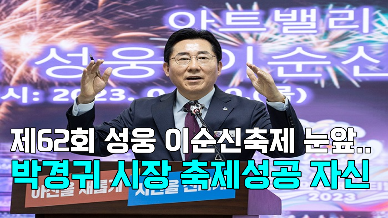 - 제62회 성웅 이순신 축제가 오는 28일부터 30일까지 이순신종합운동장과 온양온천역 광장 등에서 열립니다. 이순신 축제는 아산의 고유 지역축제였지만 코로나19 대유행으로 3년간 열리지 못하다가 올해 다시 열리는데, 박경귀 아산시장은 지난 61년간 축제와 완전히 다른, 성웅 이순신만 위한 축제로 다시 태어나게 하겠다는 포부를 밝혔습니다.