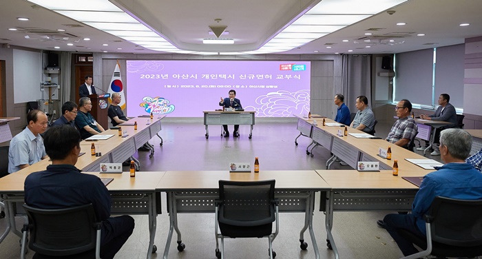 [아산신문] 아산시가 어제(20일) 시청 상황실에서 2023년 개인택시운송사업 신규 면허 교부식을 개최했다고 밝혔다.