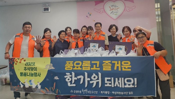 [아산신문] 온양5동 행복키움추진단(단장 강연식)이 어제(13일) 추석맞이 물품 나눔 행사를 진행했다고 밝혔다.