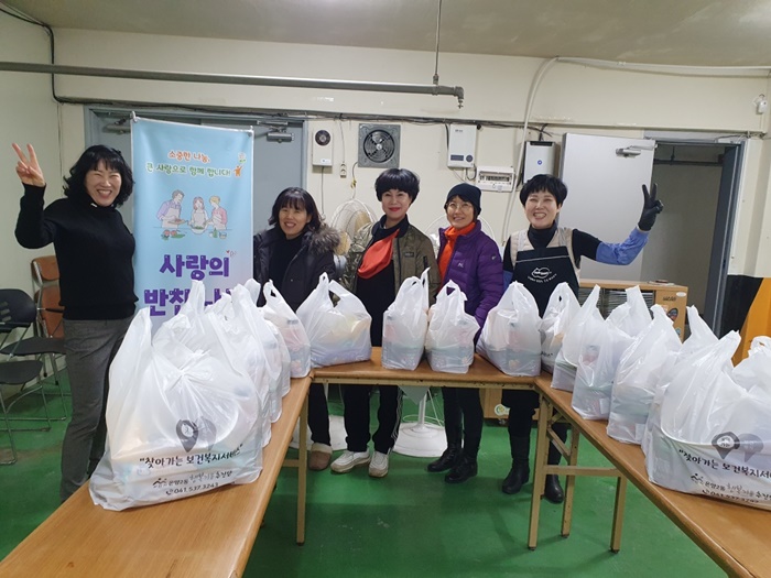 [아산신문] 아산시 온양2동 행복키움추진단이 지난 6일, 설 명절 맞이 음식을 준비해 아산시기초푸드뱅크 기부식품과 함께 취약계층 24가구에 전달했다.