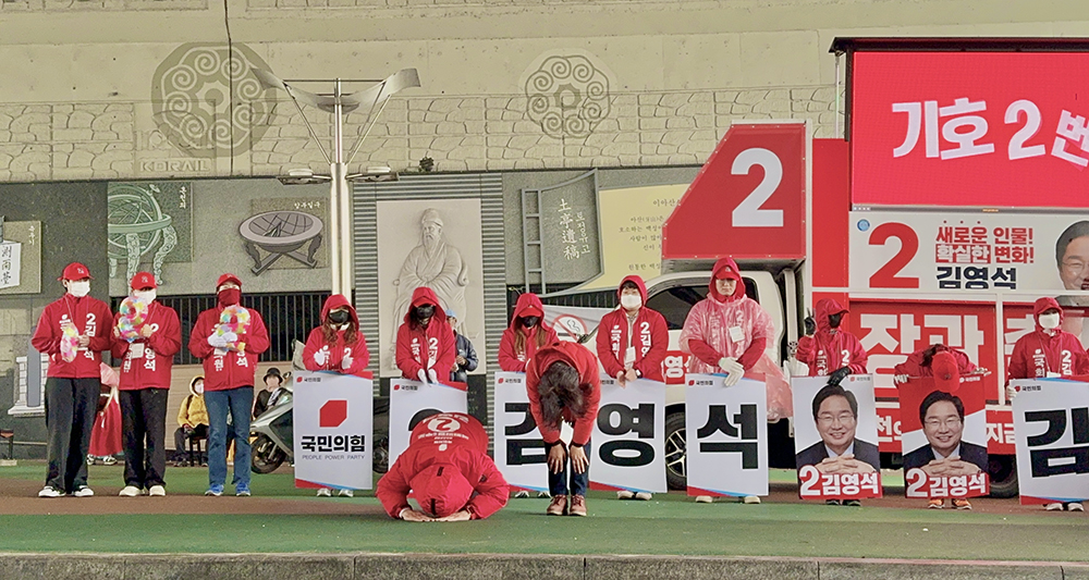 김영석 후보는 공식 선거운동 첫날인 28일 오후 온양온천역 앞 광장에서 출정식 행사를 벌였다. 출정식은 사전 공연과 본행사로 이어졌는데, K 판소리명인과 현대무용가 Y 씨가 사전 공연자로 이름을 올렸다.