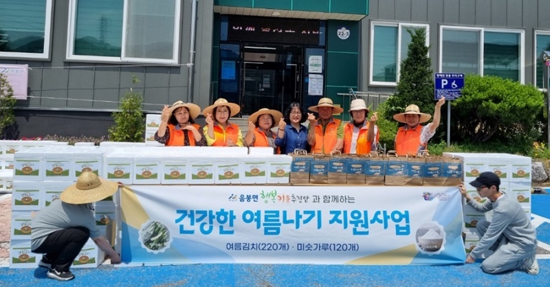 이날 후원자의 후원금으로 열무김치 5kg(220박스)와 미숫가루 1kg(120봉지)를 준비했고, 음봉면 이장협의회에서 미숫가루 1kg(100봉지)를 기부했다. 이날 준비된 김치와 미숫가루는 복지 이장을 통해 관내 독거 가구 220가구에 전달할 예정이다.