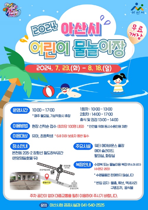 시에 따르면 이 시설은 유아와 초등학생 이하 어린이들을 대상으로 무료로 운영되며, 워터에어바운스 풀장, 슬라이드 등 물놀이시설과 화장실, 탈의실, 샤워실 등 편의시설을 갖추고 있다. 다만, 6세 이하 어린이는 부모와 함께 동반 입장해야 한다.