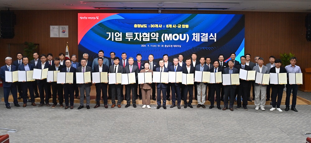 충청남도는 오늘(11일) 도청 대회의실에서 김태흠 도지사를 비롯해 박상돈 천안시장 등 8개 시‧군 단체장과 부단체장, 박두영 엔필드씨에이 대표이사를 비롯한 기업 대표들이 참석한 가운데 투자협약 체결식을 가졌다.