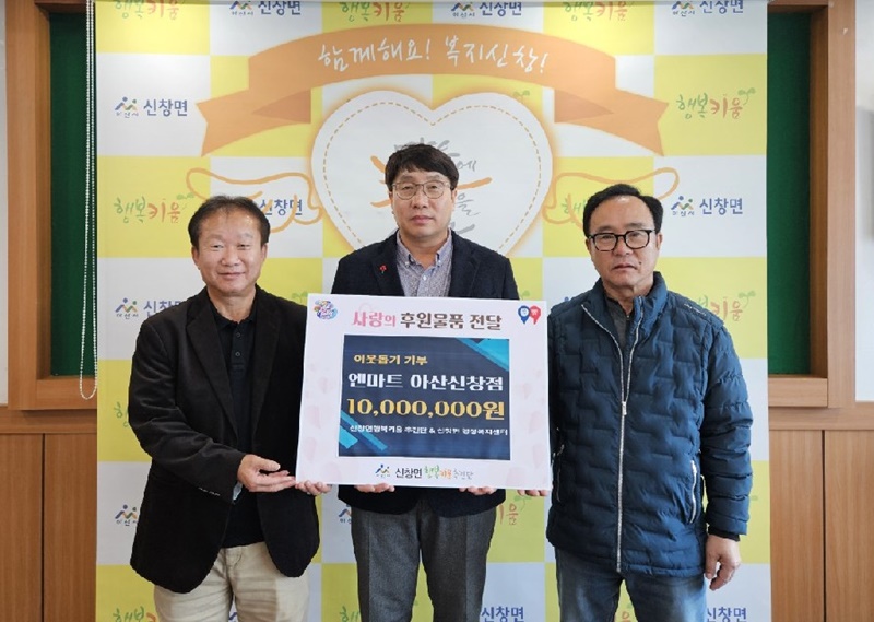[아산신문] 엔마트 아산신창점(대표 박종한)은 지난 17일 지역사회 어려운 이웃을 돕기 위해 신창면 행복키움추진단과 신창면 행정복지센터의 사랑의열매 희망2025나눔 이웃돕기 성금으로 각각 500만 원씩 총 1,000만 원을 기부했다고 밝혔다.