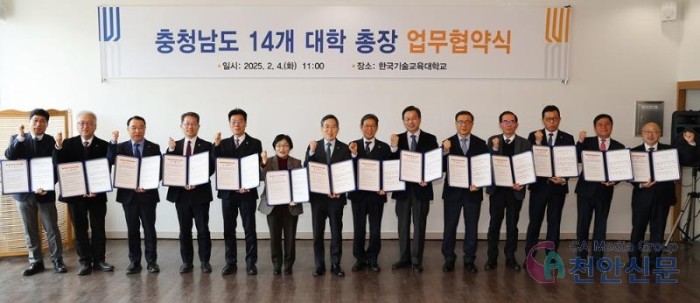 협약은 △단국대 △건양대 △백석대 △백석문화대 △상명대 △선문대 △순천향대 △신성대 △아주자동차대 △연암대 △충남도립대 △한국기술교육대 △한서대 △혜전대 등 총 14개 대학이 함께했다.