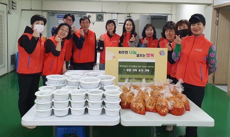 ‘영양 가득 온기 가득’사업은 거동이 불편한 노인, 장애인 등 취약계층 24가구를 대상으로 월 1회 방문하여 식료품을 지원하고, 안부를 살피는 사업이다.