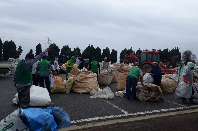 대흥리 선사유적지 주차장에서 진행된 캠페인은 비가 오는 날씨에도 깨끗한 환경을 만들기 위해 회원들이 힘을 모아 마을에 방치된 폐비닐, 농약병 등 영농폐기물을 집중 수거했다.