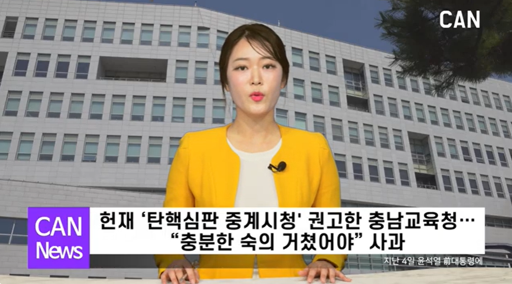 [아산신문-천안TV] 충남교육청이 지난 4일 윤석열 前대통령에 대한 헌법재판소의 탄핵심판 중계방송을 각 학교에서 시청할 수 있도록 권고하는 내용의 공문을 보낸 것과 관련해 사려 깊지 못했다면서 사과했습니다.