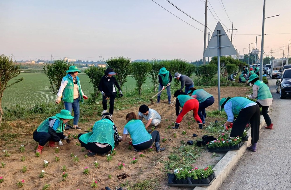 행사에는 둔포면 각 마을의 새마을지도자들이 참여해, 관대리 꽃동산에 다양한 종류의 꽃을 심으며 누구나 머물고 싶은 공간을 만들기 위해 힘을 모았다.