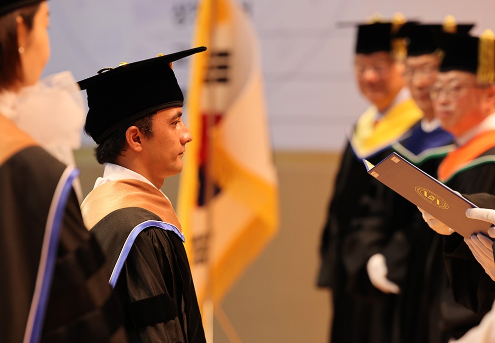 특히 이번 학위수여식에서는 타지키스탄 출신 관광경영학과 수하일리 씨가 박사학위를 받아 눈길을 끌었다. 그는 KBS '이웃집 찰스'에서 ‘작은 거인’으로 소개된 졸업생으로, 국적과 배경을 넘어 도전정신과 긍정의 태도로 학문적 성취를 이룬 글로벌 인재로 평가받고 있다.