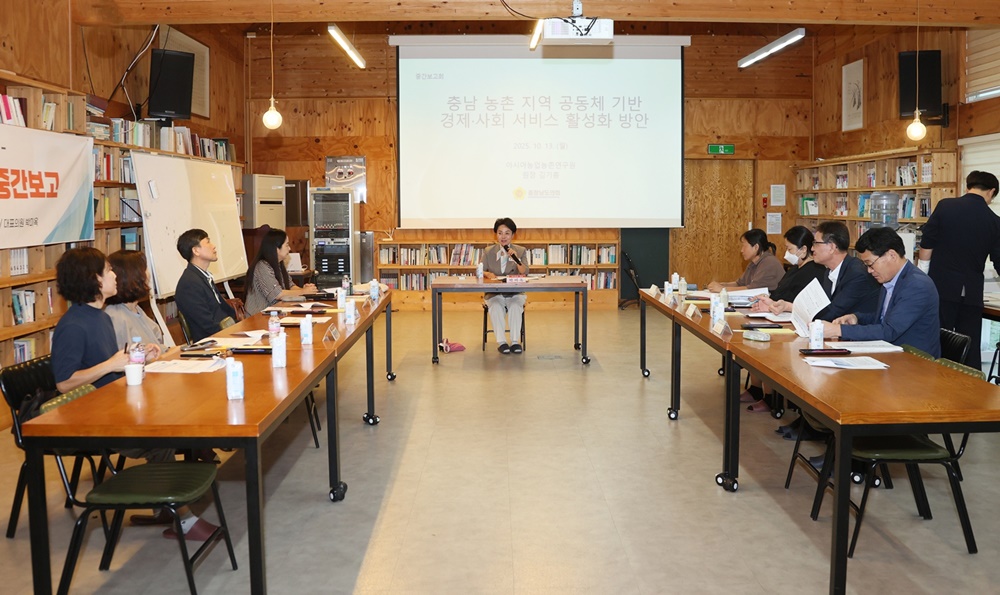 [아산신문] 충청남도의회 ‘농촌지역 공동체 활성화 정책 연구모임’(대표 박미옥 의원)은 어제(13일) 홍성군 장곡 오누이다목적회관에서 제2차 회의 및 연구용역 중간보고회를 열고, ‘충청남도 농촌 경제·사회서비스 공동체 지원센터’ 설치를 핵심으로 한 정책 추진 방향을 논의했다.