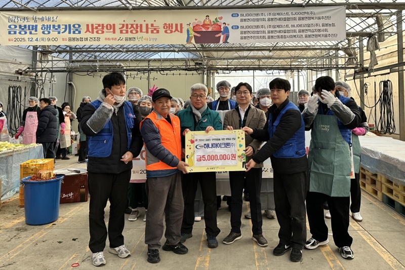 [아산신문] 하나마이크론㈜(대표 이동철)은 지난 4일 아산시 음봉면 행복키움추진단(공동단장 이정성·이의천)의 ‘2025년 함께해요 행복키움 사랑의 김장 나눔 행사’에 후원금 500만 원을 전달했다고 밝혔다.